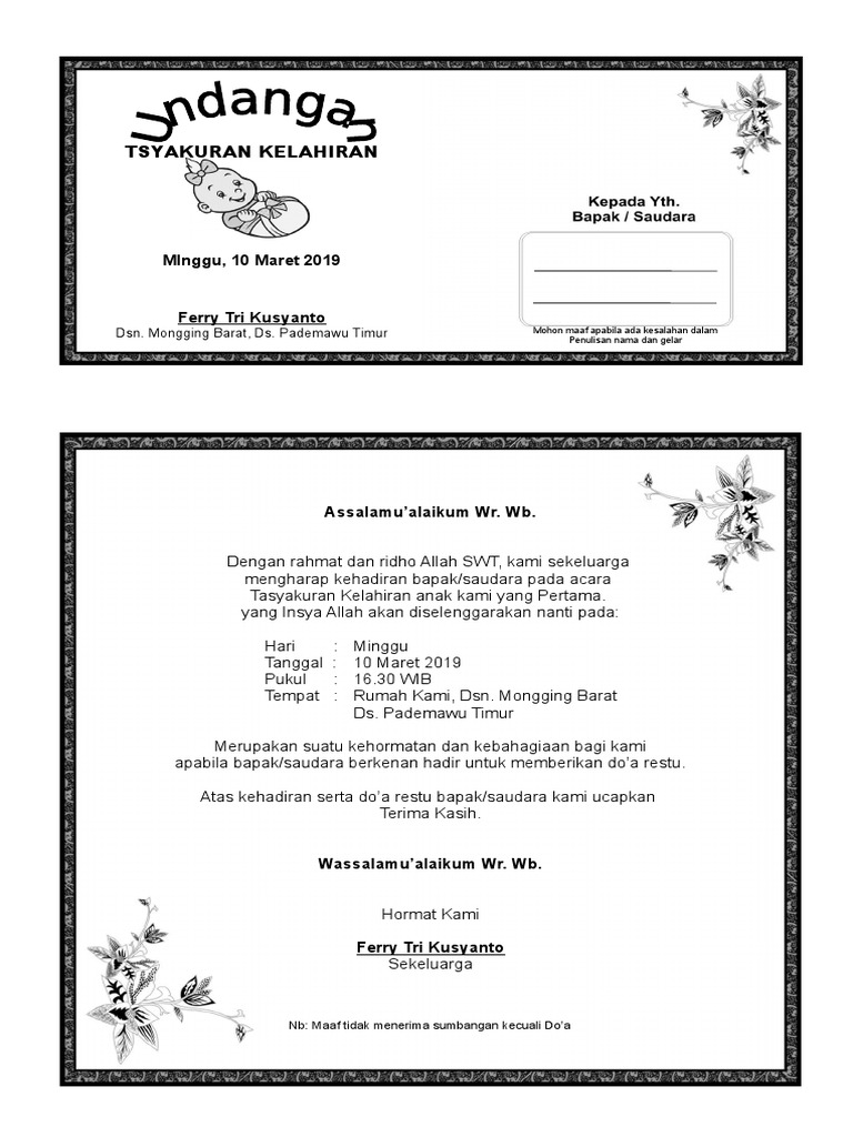 Contoh Format Penulisan Syukuran Kelahiran Bayi | Belajar Office
