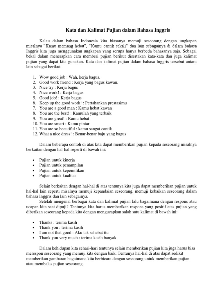 Contoh Ungkapan Memuji Dan Menjawab Pujian Dalam Bahasa Inggris Belajar Bahasa Inggris Online – Cute766