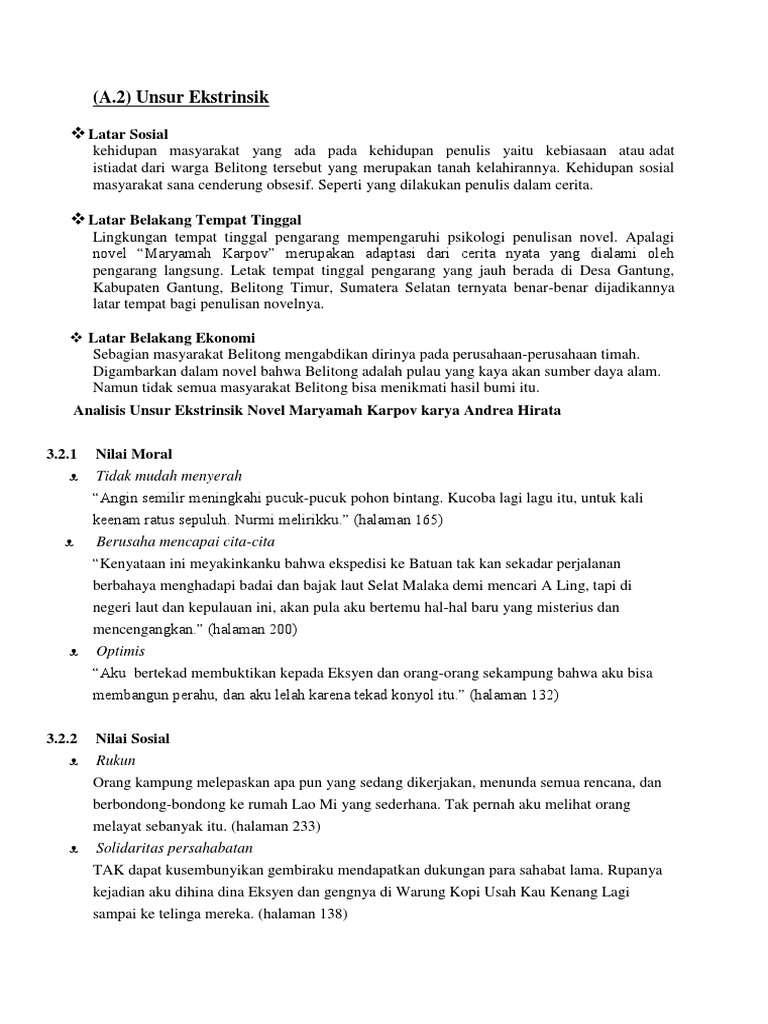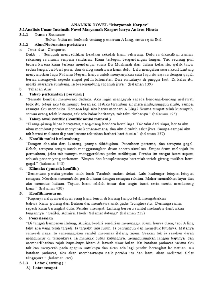 Unsur Intrinsik Novel Maryamah Karpov - Harwida Novika