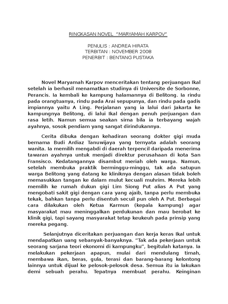 NOVEL MARYAMAH KARPOV KERTAS : BOOKPAPER PENULIS : ANDREA HIRATA …
