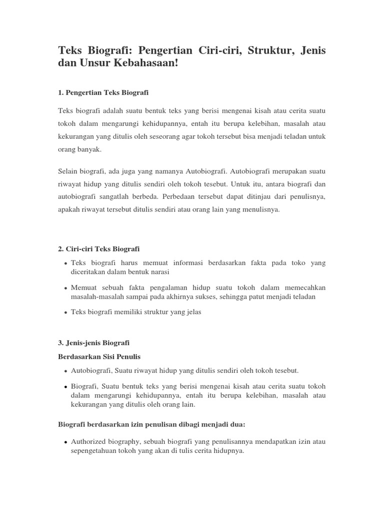 Teks Biografi: Pengertian Ciri-ciri, Struktur, Jenis dan Unsur …