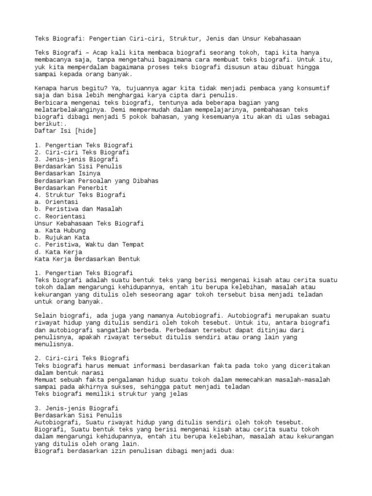 Struktur Dan Unsur Kebahasaan Teks Biografi - Berbagai Struktur
