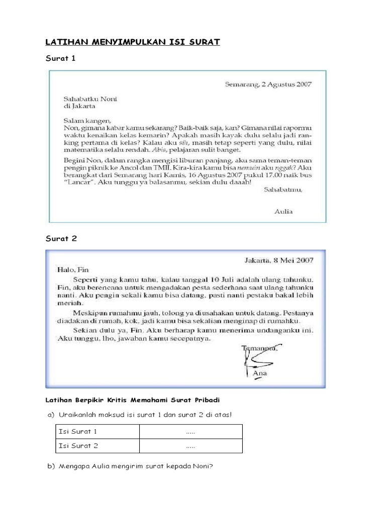 Latihan berpikir kritis memahami surat pribadia) uraikanlah madsud …