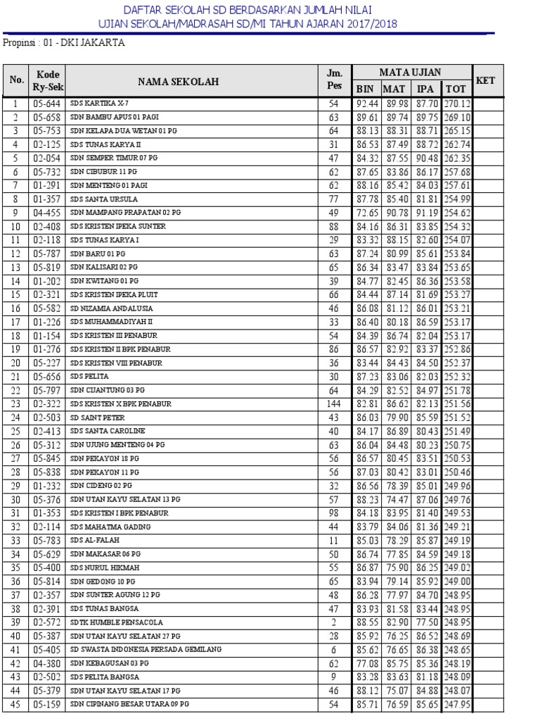 Peringkat Sekolah Provinsi Dki Jakarta Sd Negeri & Swasta