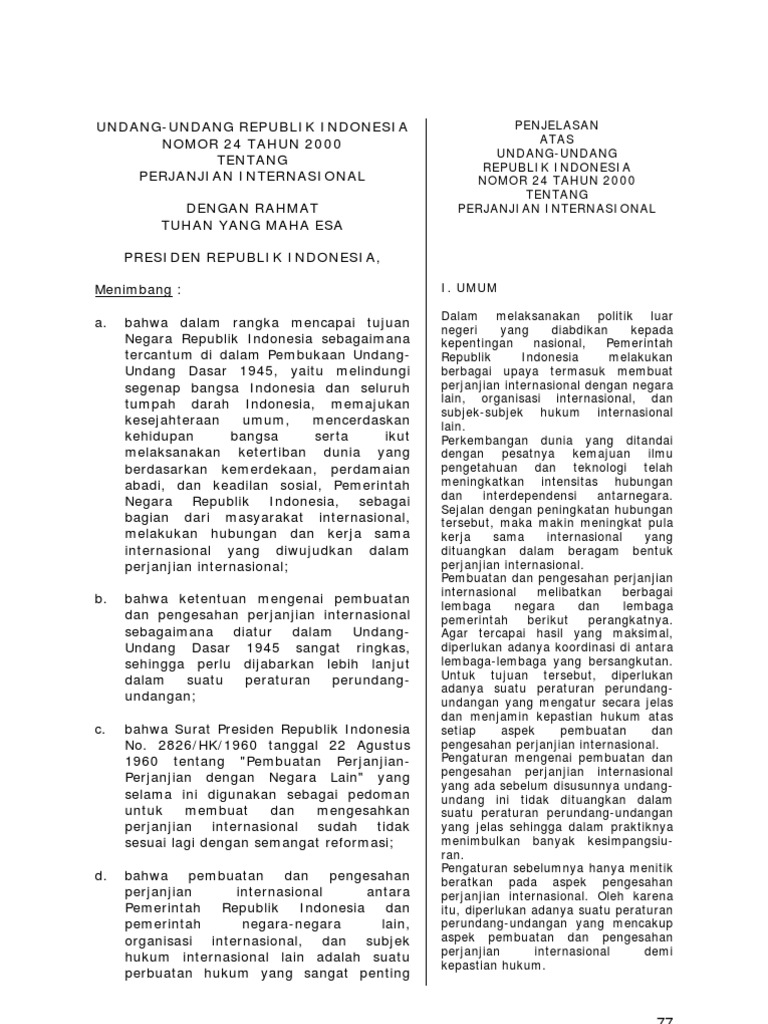 UU Nomor 24 Tahun 2000 tentang Perjanjian Internasional - Digital …