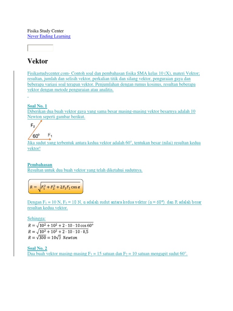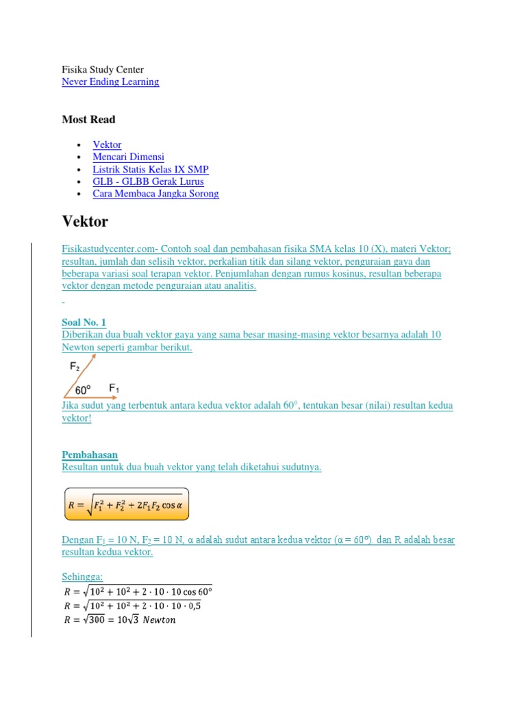 Contoh Soal Vektor Fisika Dan Pembahasannya Kelas 10 - Contoh Soal …