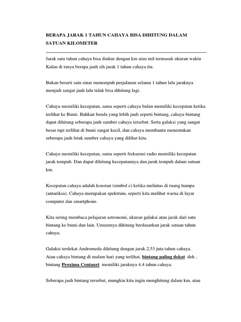 Berapa Jarak 1 Tahun Cahaya Bisa Dihitung Dalam Satuan Kilometer