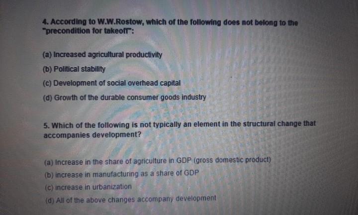 Solved: 4. According To W.W.Rostow, Which Of The Following …