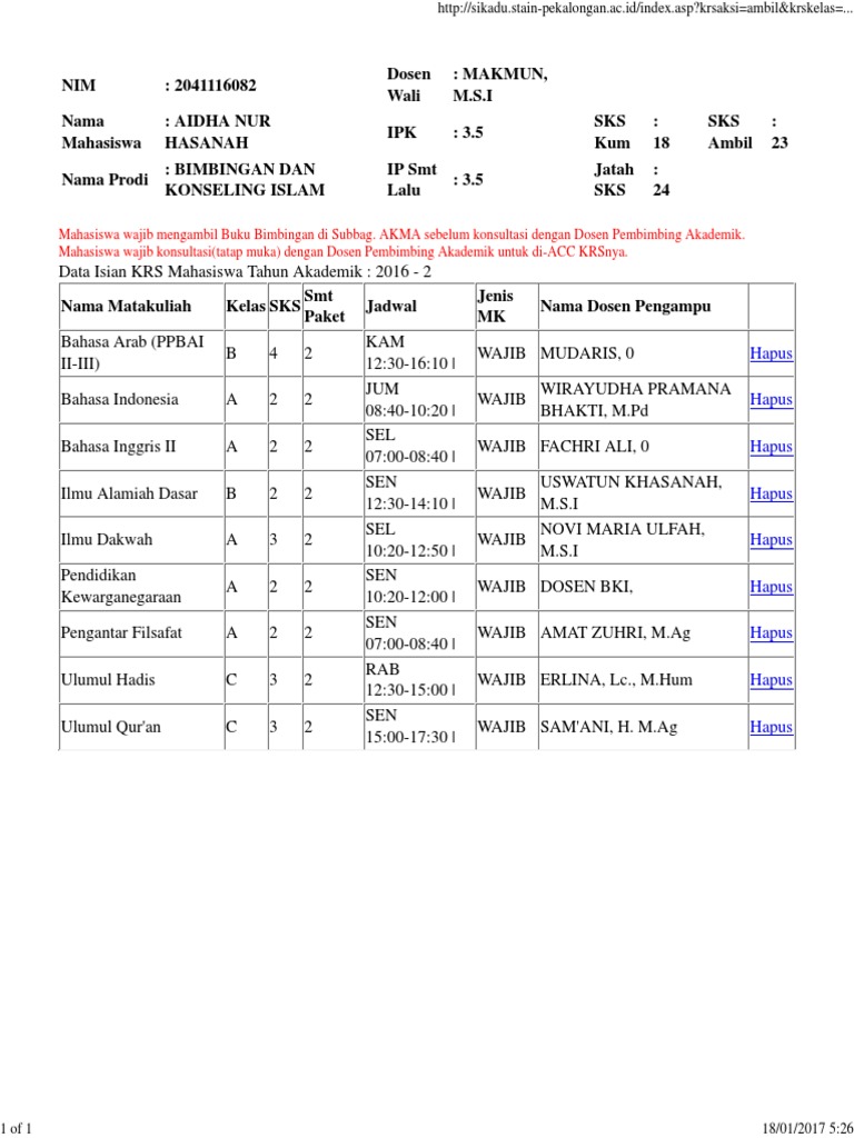 Alur dan Panduan Sistem Informasi Akademik Terpadu (SIKADU) .Al-UR PROSES KRS ONLINE STAIN PEKALONGAN - [PDF Document]
