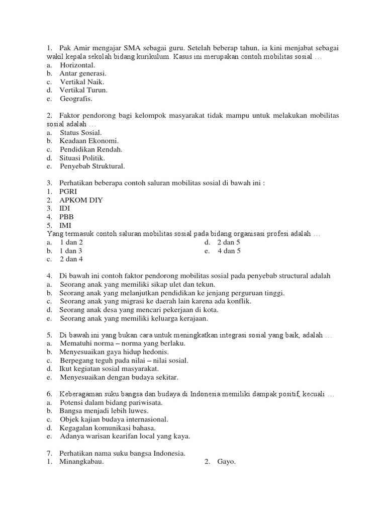 9.berikan contoh faktor pendorong mobilitas sosial pada penyebab structral? b10.sebutkan cara untuk - Brainly.co.id