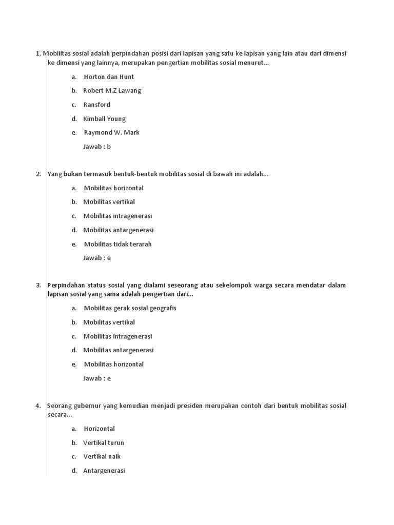 SOAL MOBILITAS SOSIAL | Sociology - Quizizz