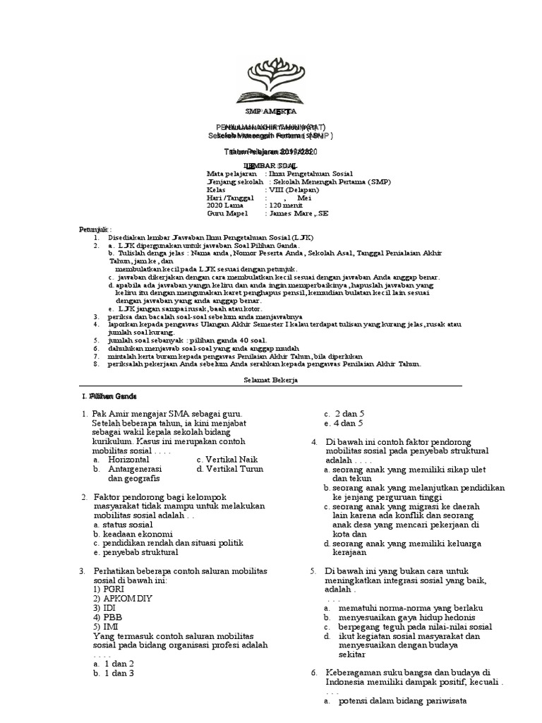 Latihan Soal Penilaian Akhir Semester 2019 IPS Terpadu Kelas 8