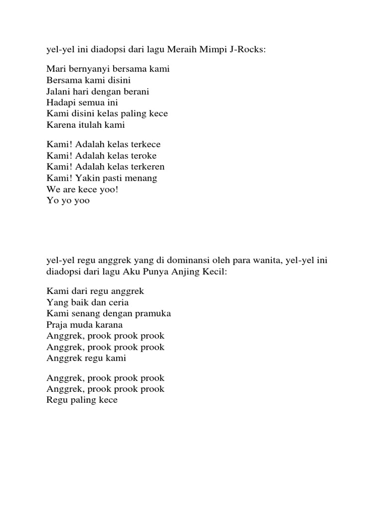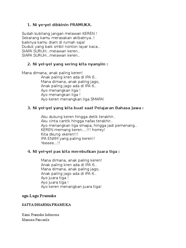 Contoh Yel Yel Pramuka Lagu Pop | Blog Pendidikan